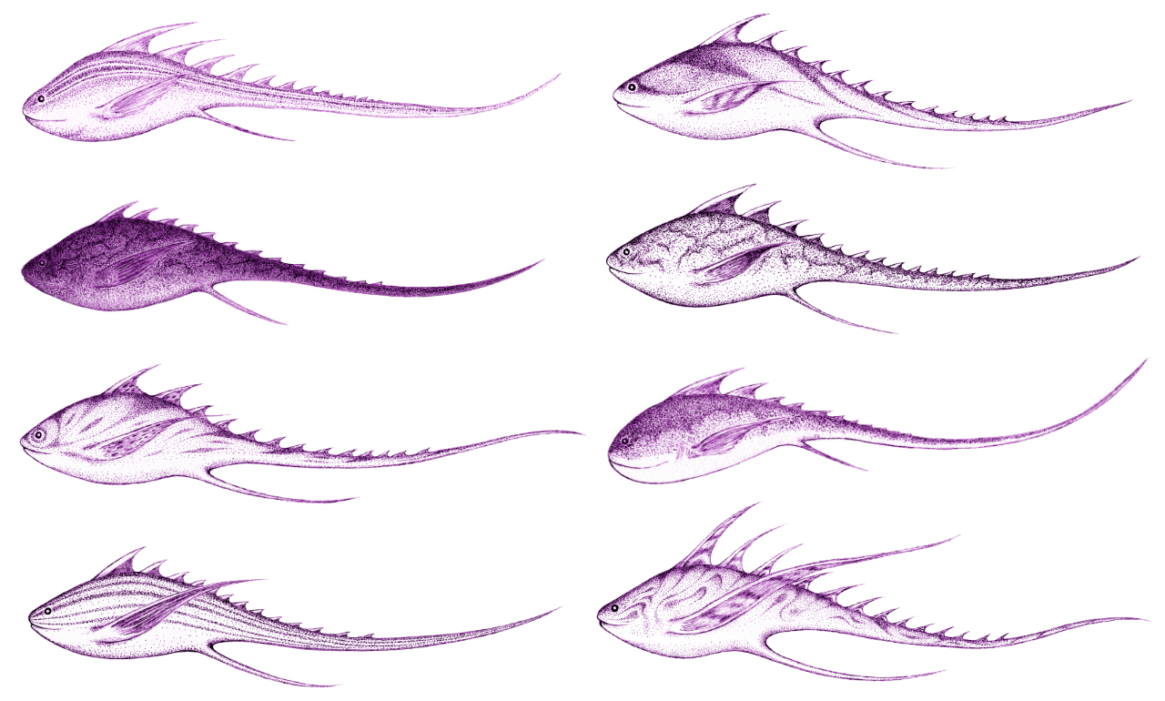 背びれが鋭い刃状になっており、上から下に弧を描くように獲物の体に切りつけ、パクッとあいた傷口に、群れで一斉に飛び込んでいき、体内に生きたまま侵入して中から食い荒らすという恐るべき生態から、古代より人類に忌み嫌われてきた。